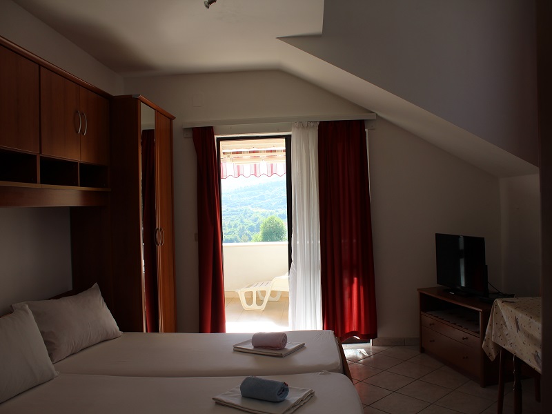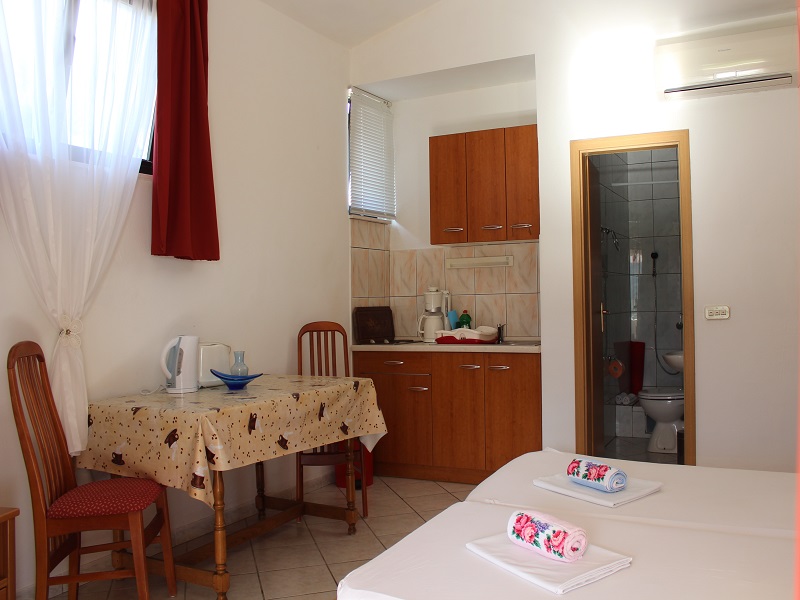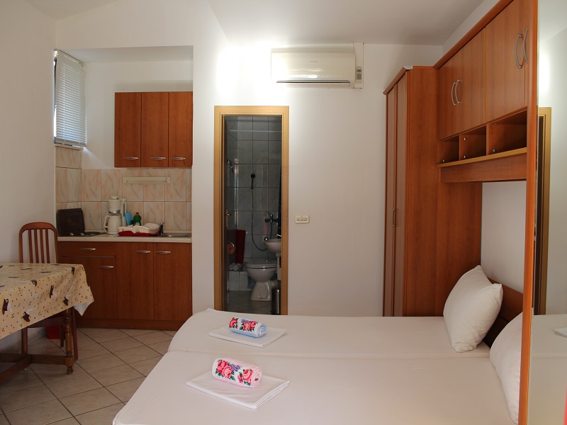 It consists of a fully equipped mini kitchen, a double bed, a bathroom with a shower and a toilet, satellite TV, air conditioning, free Wi-Fi, balcony with sea view and the hill of Sveti Ilija.